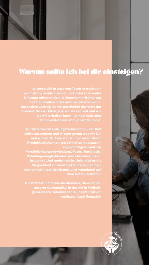 Die Person, die dir diesen Link geschickt hat, ist Teil unseres Teams „so blessed“ und wir würden auch dich total gern in unser Netzwerk aufnehmen!